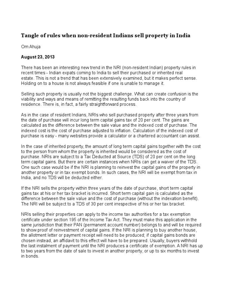 How can NRIs invest in mutual funds in India? Personal Finance Plan Do Nri Pay Capital Gains Tax — nris selling property in india face capital gains tax implications based on stcg or ltc, and tds is deductible. nris are mandated to declare capital gains in their indian income tax returns. the capital gain tax rate for nris is 15%, and they are subject to tds at the same rate. For properties sold before 2. Do Nri Pay Capital Gains Tax.
